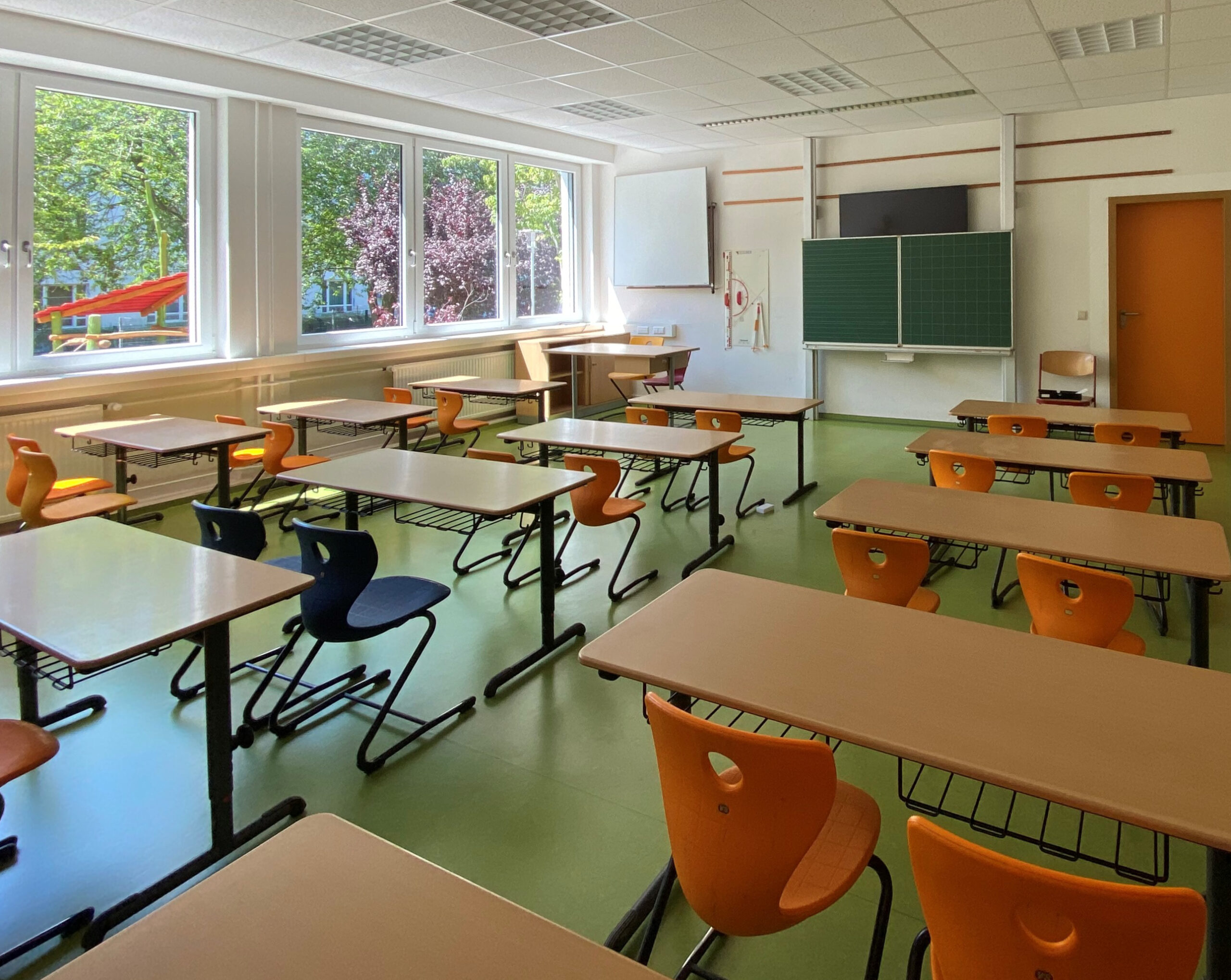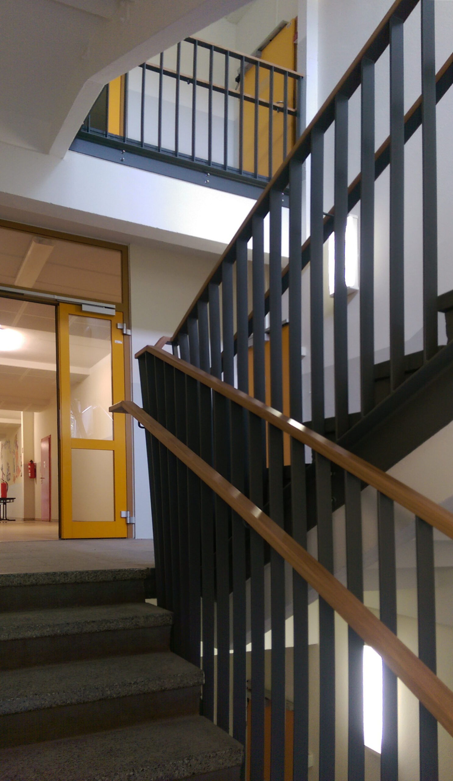 Mit der Durchführung der wesentlichen Bauleistungen im Gebäude in den kurzen Monaten der Sommer- und Winterferien sowie den Arbeiten im Außenbereich, auch während der Schulzeiten, wurden neben der energetischen Sanierung mit der Erneuerung der Fassade, dem Austausch der Fenster und des Sonnenschutzes auch eine statische Sicherung der Giebelwände, die Neugestaltung der Eingänge, der Austausch der Treppengeländer, die Erneuerung der Innentüren sowie eine nahezu vollständige Überarbeitung der Bodenbeläge und Wandbeschichtungen ausgeführt.